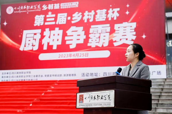 4月25日上午9:00,由学院工会委员会、党委宣传统战部和旅游管理系承办,四川乡村基有限公司协办的第三届“乡村基杯”厨神争霸赛在振华广场如期举行,学院副院长康璐、乡村基集团品牌四川公司区域总经理赵晓燕、人力资源总监陈容、区域总厨曾照祥、田海、训练部经理伍艳、李丹、唐彬以及学院相关职能部门负责人出席了本次大赛。