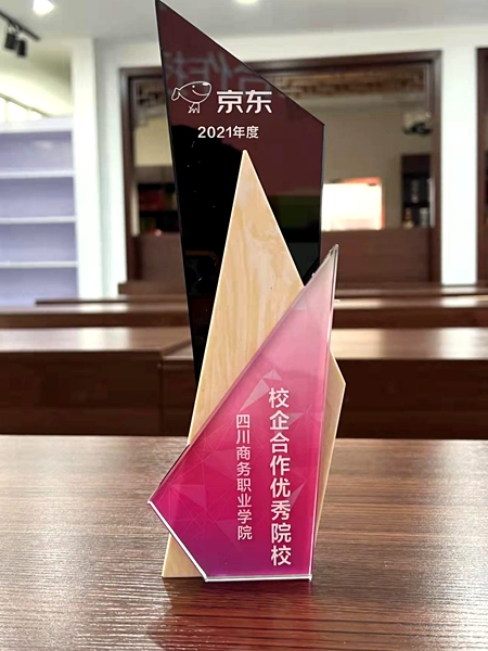12月29日上午,京东零售人力资源部经理刘蛟为鸭脖颁发了2021年度优秀校企合作院校奖杯。