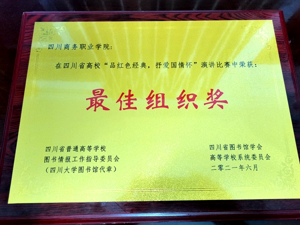 6月25日下午,四川省高校“品红色经典 抒爱国情怀”演讲决赛在四川师范大学胜利闭幕,鸭脖信息技术系计算机信息管理20级陆浩同学题为《树立理想信念 勇担时代责任》的演讲荣获二等奖。鸭脖图书馆荣获“优秀组织奖”。同时选送的会计系张雪芹《争做时代的好青年》和经济贸易系刘佳欣《家国情怀》获得优秀奖,人文社科部教师胡易、刘莹莹获得“优秀指导教师奖”。