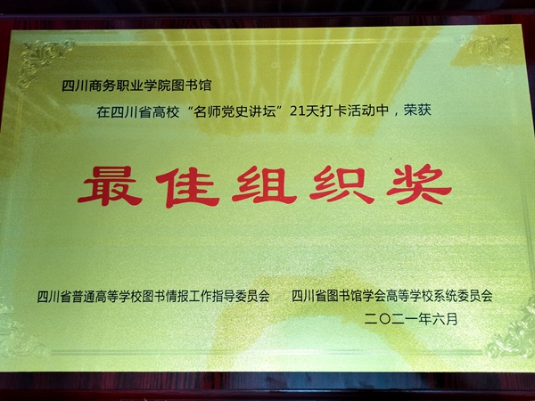 同时,鸭脖图书馆还获得四川省高校“名师党史讲坛”21天打卡活动“最佳组织奖”。全省60余所高校8000多人参加为期21天的活动,观看了国内党史专家短视频讲座,深入了解党建历史上21个苦难辉煌的重要史实,更加坚定“听党话、跟党走”的信心和决心。