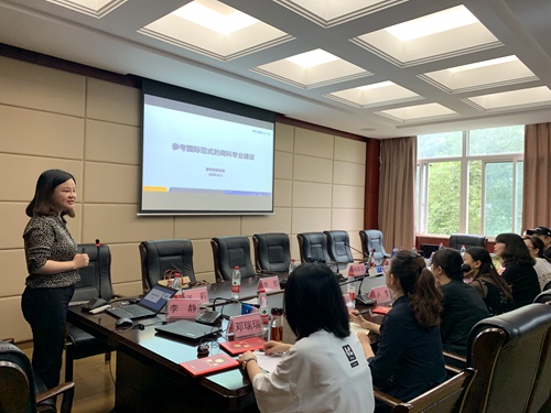 马妍作了题为《参考国际范式的商科专业建设》的报告分享。报告详细介绍了商科国际范式专业建设的核心理念、建设过程,并对鸭脖当前专业建设的现状进行了详细的分析。国际范式专业建设核心小组组长张莉随后发言。