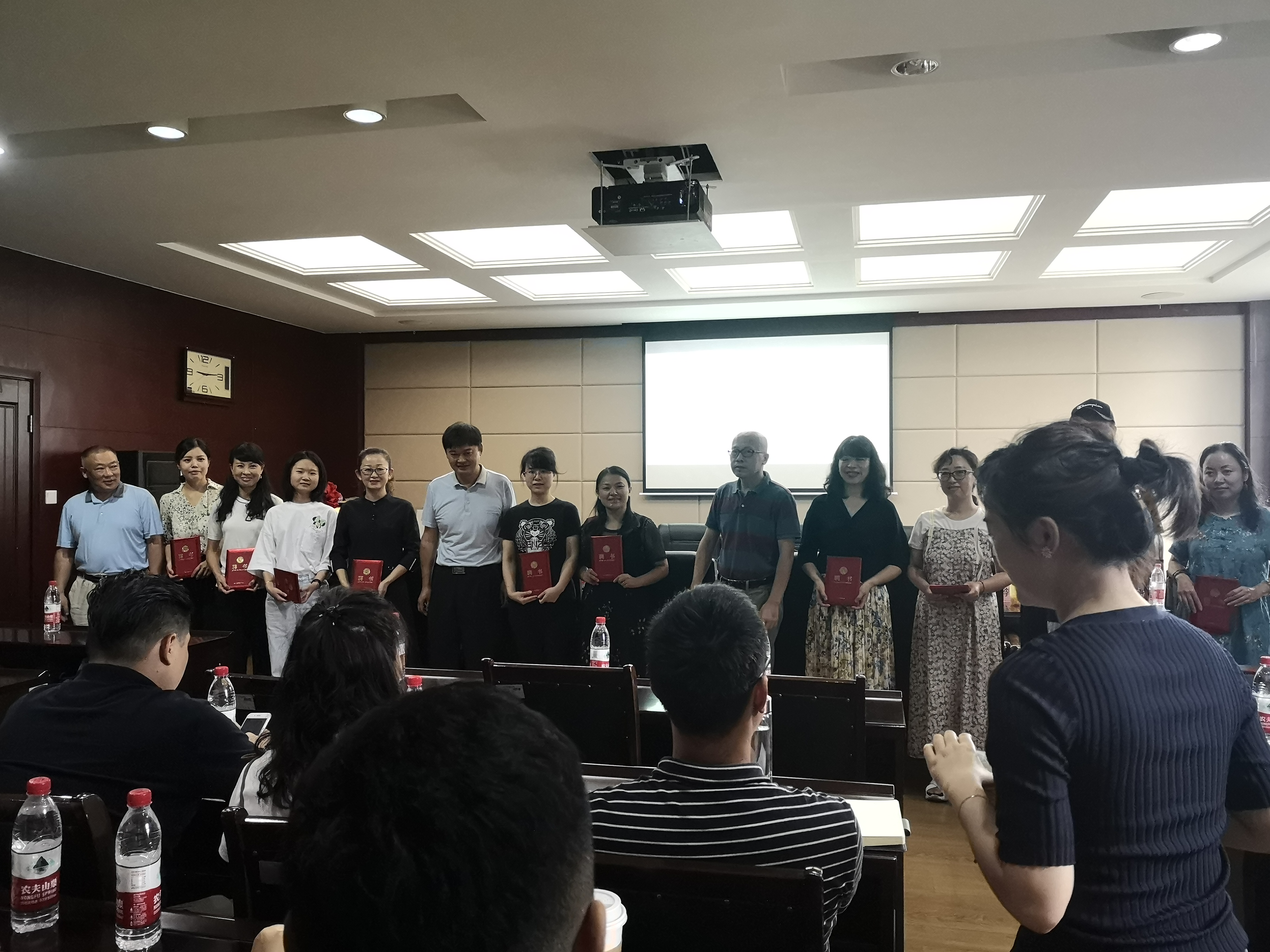 副院长向宏志与马妍共同为鸭脖市场营销专业“商科国际范式专业建设项目”揭牌,宣告项目正式启动。向宏志、黄松、朱贵水为市场营销专业的核心小组10名成员颁发了聘书。