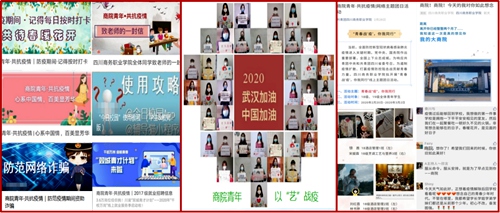 3、开展线上学习生活相关辅助工作。广大团员青年积极响应“停学不停课”安排,团学干部全力协助学院、配合老师,组织同学们上好网课;根据防疫所需信息,搞好网上调查、舆情跟进等工作;提前计划复学后疫情防控志愿服务,为平安、顺利开学做好准备。同学们纷纷表示,疫情期间,“早晨叫醒大家的不再是闹钟,而是辅导员和班团干部在QQ群里发的讯息”,“辅导员和班团干部就是商院学子又一个的‘N95’。”