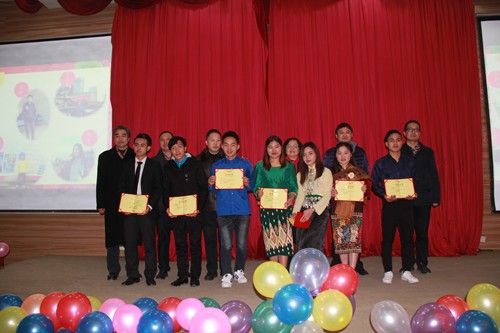 2019年1月9日,学院在商务信息交流中心隆重举行留学生喜迎新春活动。学院党委委员、副院长许丹雅,党委委员、副院长向宏志,党委委员、纪委书记官培生,党委委员、副院长张军,党委委员、党政办主任池秋平,党委委员、思政部主任李叔龙,党委学生工作部、后勤保卫处、经营管理系、人文社科部、国合中心等相关部门领导,部分任课教师以及全体留学生参加了此次活动。