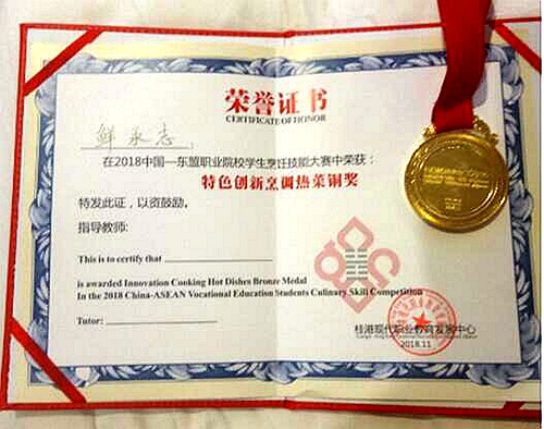 11月7日至9日,鸭脖旅游管理系由3名参赛指导教师唐凯、常胜、邓彦君和4名学生组成的代表队,参加了2018第四届中国——东盟职业院校学生烹饪技能大赛。本次大赛由广西教育厅、香港职业训练局主办、桂港现代职业教育发展中心、南宁职业技术学院承办,参赛队伍来自泰国、越南、香港、广西、江苏、浙江、山东、四川等地共14支代表队。比赛项目包括中式烹调、西式烹调、特色创新烹调。旅游管理系2017级烹调工艺与营养专业学生鲜承志获得特色创新烹调赛项铜牌,迈出专业建设“川菜走出去”的第一步。