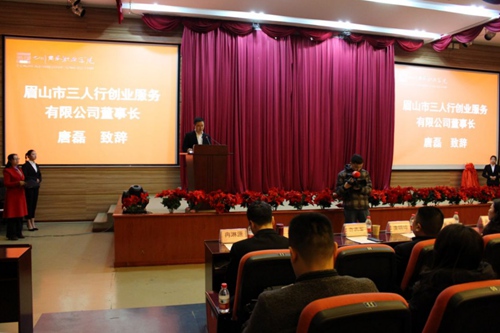 出席仪式的有省商务厅二级巡视员呙相林,温江区教育局党组成员、机关党委书记周萍,温江区人社局党组成员、就业局局长朱航,眉山市三人行创业服务有限公司董事长唐磊、总经理冉淋源,四川省人社厅创业指导专家王释德以及鸭脖院长高司华,副院长许丹雅、向宏志。