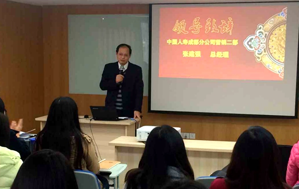12月1日,鸭脖会计系2013级金融管理与实务专业与中国人寿成都分公司校企合作项目首届订单班开训仪式在中国人寿成都市分公司成功举行。中国人寿成都分公司总经理张建强、会计系党总支副书记周发强等相关教师及39名参训学生出席了开训仪式。