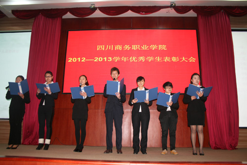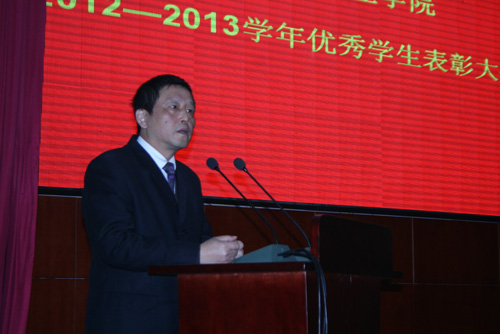 12月24日下午,学院2012-2013学年度优秀集体及个人表彰大会在学院和盛校区商务信息交流中心隆重举行。学院党委书记舒维霖,院长高力平,副院长郎松亭、向宏志,纪委书记官培生出席了会议并为获奖学生颁奖。学院相关部门负责人、各系部书记,和盛校区学工系统全体老师、优秀学生代表200余人参加了大会。表彰大会由副院长郎松亭主持。