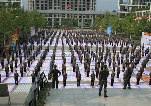 1500余名军训新生在规定的时间内把被子叠的整整齐齐、有棱有角、方方正正。最后评选出10名被子叠得非常优秀的同学,并将这些优秀学员叠的被子向全团展示。
