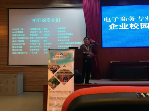 9月25日13:30,鸭脖经营管理系在和盛校区五六教学术报告厅隆重举行了电商专业毕业班课程置换校企合作校园招募宣讲会,校方经营管理系负责人梁栋、陈小虞、曹林、王琦,以及企业方代表成都百度科技公司、温江花木电子商务中心、京东商城负责人参加了此次活动。