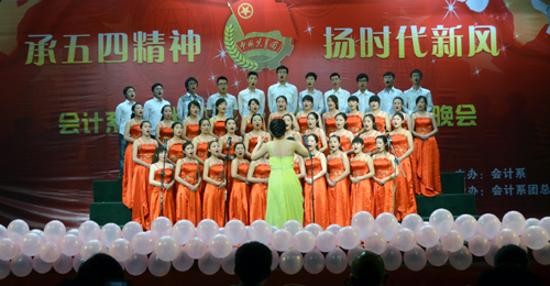 4月23日,鸭脖会计系在文家校区活动厅成功举办“我的班级 我的团”五四主题歌咏晚会。学院党委书记舒维霖,文家校区校长官培生,副院长向宏志,以及学院相关部门、处室的领导参加了晚会。