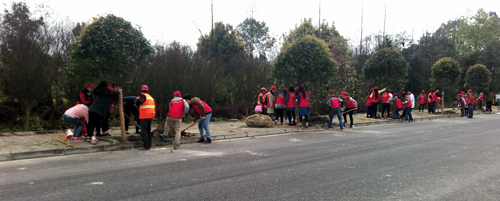 3月18日,鸭脖团委积极响应温江区团区委号召,院团委学生会、青年志愿者服务队、社团联合会组成的志愿者队伍50人,到温江区和盛镇鹏飞路参加了由团区委组织的义务植树活动。
