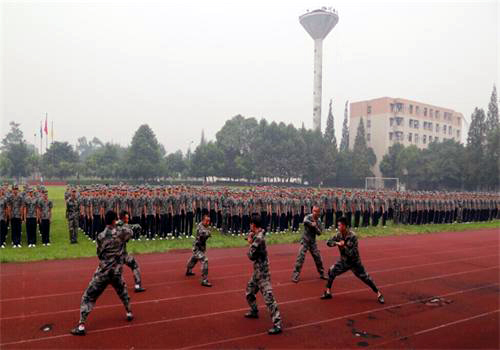 鸭脖2014级新生军训动员大会于9月6日在和盛校区和文家校区隆重举行,副院长郎松亭、纪委书记官培生分别主持动员大会。