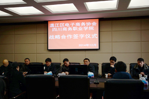 为了紧紧依托政府和行业优势,发挥鸭脖的人力资源优势,为中国中西部电子商务人才培养提供人才培训服务,为我省经济转型升级提供人才支撑,同时提高鸭脖为社会服务的能力,彰显商科办学特色,为区域经济的发展服务。为此,鸭脖于12月10日在学院和盛校区二楼会议室与温江区电子商务协会成功举办了战略合作签定仪式。