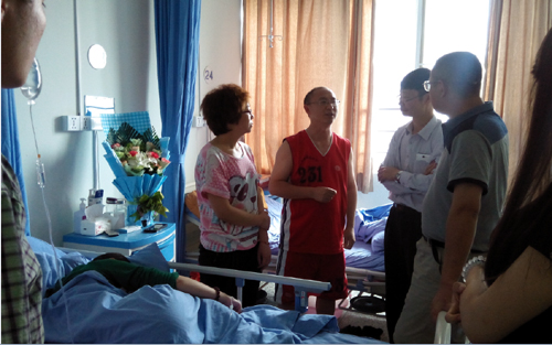 5月21日,会计系主任杜先林、党总支副书记肖勇带领系部老师和学生干部一起到医院探望张箫艺同学和家长,为该同学送去了爱心捐款并鼓励该同学鼓起勇气,克服困难,争取早日返回课堂,并让家长放心,学院和系部也会尽最大努力帮助张箫艺同学完成学业,协助解决学习和生活中遇到的各种问题。