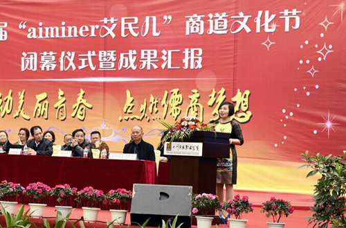 闭幕仪式由学院党委委员、副院长郎松亭主持。党委书记舒维霖首先致闭幕词,他要求学院各系各部门要不断总结经验,以“学无涯,商有道”校训为引领,注重百年职业教育的文化传承与创新,大胆探索新形势下高等院校校园文化建设的新路径,不断创新商科特色校园文化建设。随后,学院校企合作单位代表、成都艾民儿皮制品有限责任公司董事长刘琼英女士发表了热情洋溢的致辞。