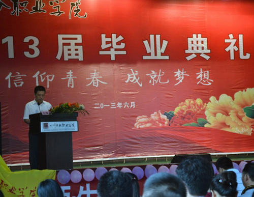6月26日上午,鸭脖2013届毕业典礼在和盛、文家两个校区同时举行。学院领导,各系部、各部门负责人,校友、家长、教师代表、辅导员老师、毕业生、在校生代表等参加了毕业典礼。副院长郎松亭和文家校区校长官培生分别主持了和盛、文家校区的毕业典礼。