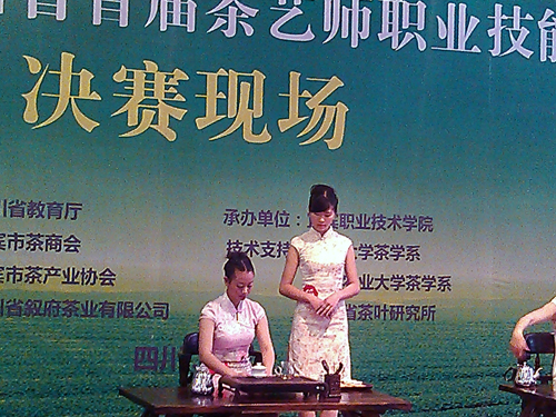 5月11日,由四川省教育厅主办,宜宾职业技术职业学院承办的“叙府龙芽杯”首届四川省高职高专茶艺师技能大赛在四川省叙府茶业有限公司金秋湖科技园区举行。鸭脖旅游管理系黄进老师指导的四位12级酒店管理专业同学代表学院参加了本次大赛,取得了团体优秀奖和个人三等奖的良好成绩。