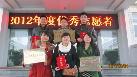 表彰大会上,鸭脖青年志愿者服务队荣获“温江区优秀志愿者集体”、 “温江区优秀青年志愿者团队”称号,青年志愿者服务队负责人周云超、刘艳红同学分别被授予“温江区优秀青年志愿者”称号。