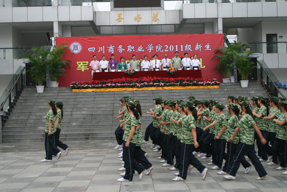 2011年9月11日上午,YABO鸭脖和盛校区再一次被十分壮观的橄榄绿覆盖,学院历史上规模最大的新生军训汇报暨开学典礼在此隆重举行。学院全体院级领导、各系部干部、武警四川省总队第一支队领导和2011级参训新生参加大会。