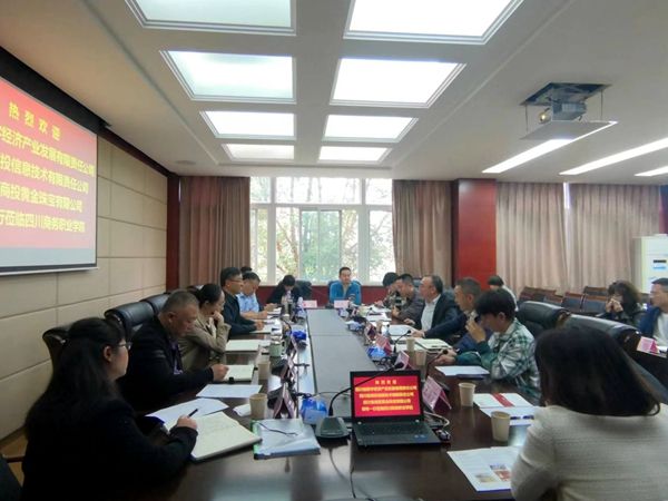 10月31日下午,四川省数字经济产业发展有限责任公司党委书记、董事长罗成明、四川省商投信息技术有限责任公司总经理马一茗、四川省商投黄金珠宝有限公司总经理陶琬等一行来访、座谈,学院党委副书记、院长高司华、副院长康璐参加接待,经济贸易系、信息技术系、经营管理系、质量办公室相关人员参加了座谈会。