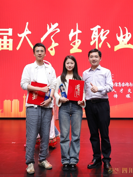4月12日,四川省首届大学生职业规划大赛展演活动在四川传媒学院举行。鸭脖教师叶茂林和2022级会计系学生周子杨分别以大赛优秀指导老师和金奖选手的身份,作为代表参加此次展演活动并上台领奖。