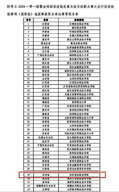 9月28日,由鸭脖会计系杜晓玲、余欣悦老师指导的代表队从全国644支参赛队伍中脱颖而出,荣获2024“一带一路”暨金砖国家技能发展与技术创新大赛之会计实务技能赛项(高职组)选拔赛全国二等奖,并以四川省第一名的成绩晋级全国总决赛。