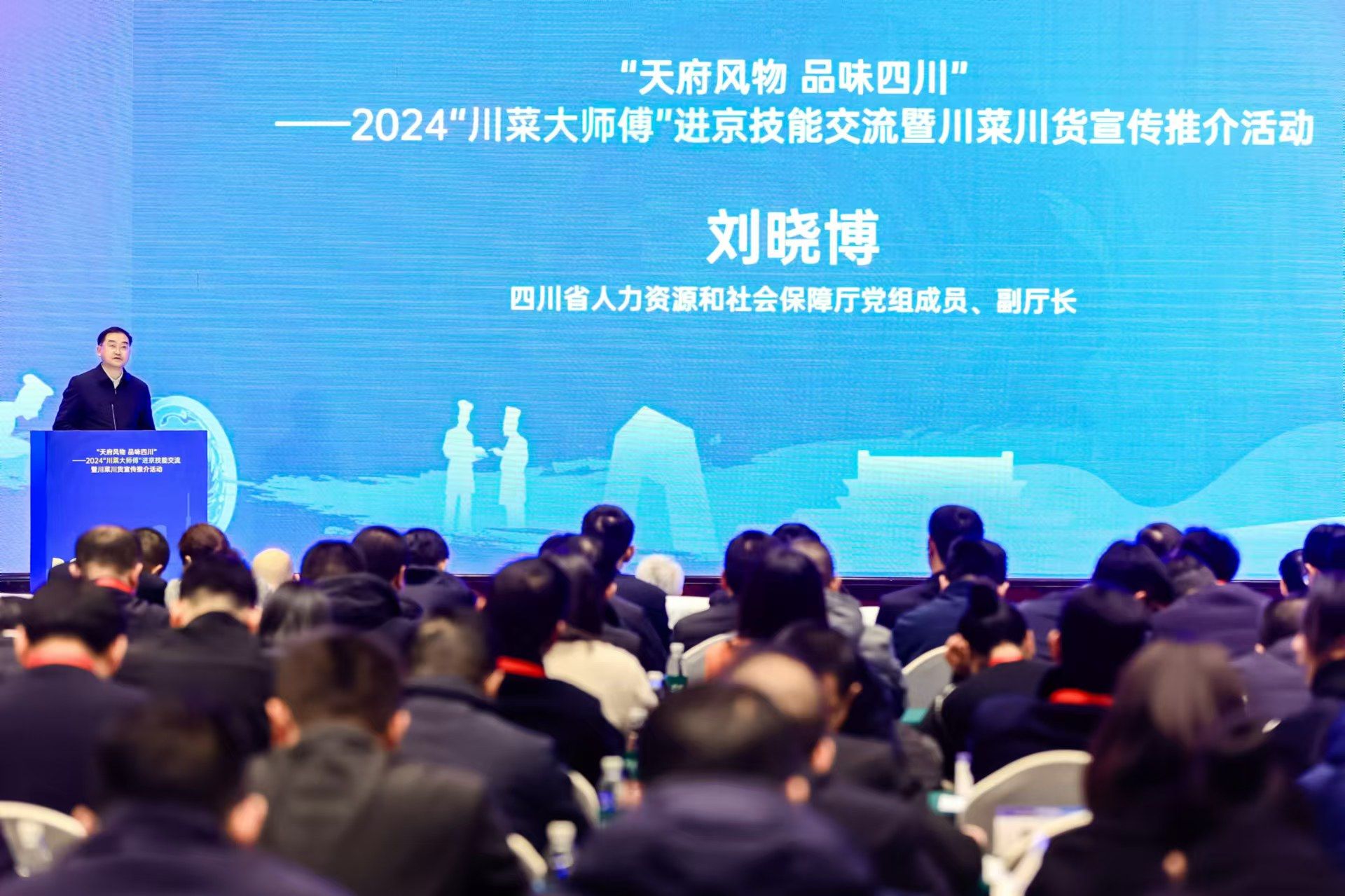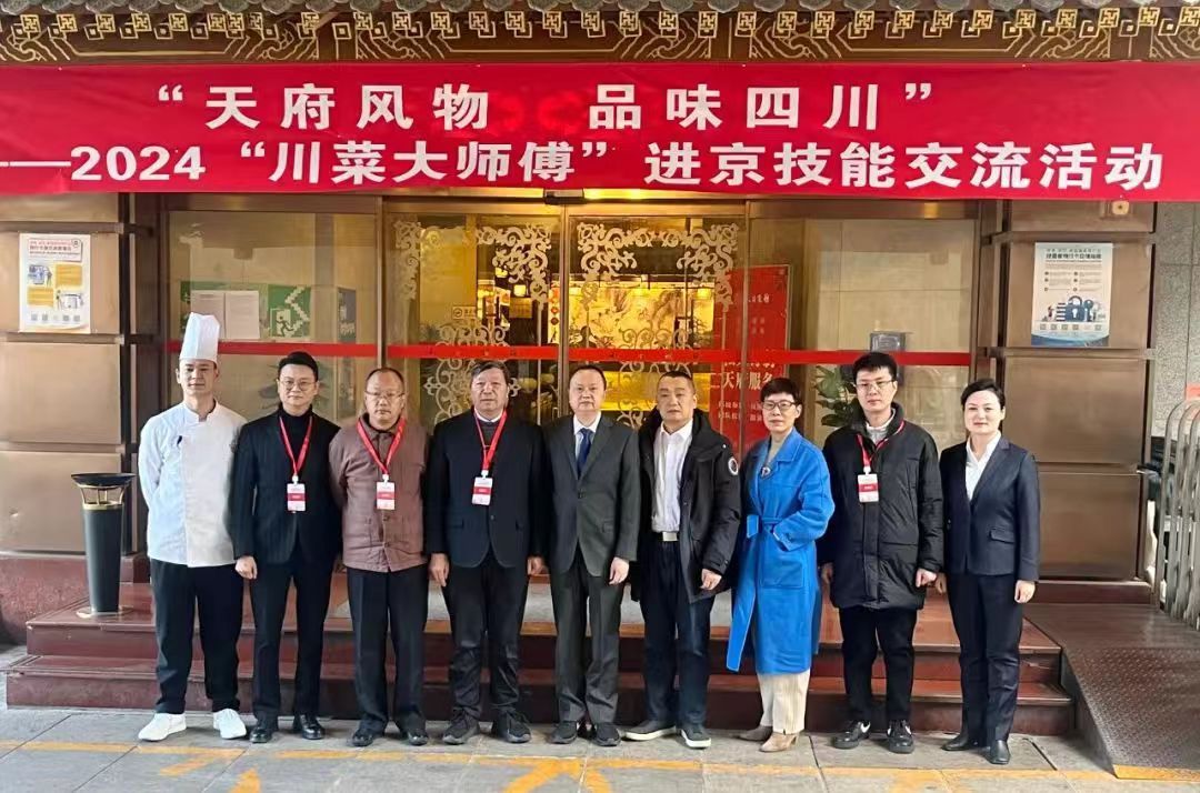 12月18日,由四川省人力资源和社会保障厅、四川省商务厅、四川省人民政府驻北京办事处、北京市人力资源和社会保障局、北京市商务局等单位主办的“天府风物 品味四川”——2024“川菜大师傅”进京技能交流暨川菜川货宣传推介系列活动在北京正式启动。学院党委副书记、院长高司华带领党委宣传部部长、经济贸易系党总支书记管齐峰、旅游管理系党总支书记陈根元、旅游管理系营养配餐专业负责人易树敏进京参加了此次活动。