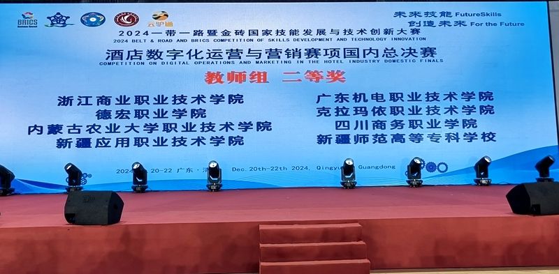 在12月22日落幕的2024“一带一路”暨金砖国家技能发展与技术创新大赛酒店数字化运营与营销赛项国内总决赛中,鸭脖旅游管理系李杰和吴梦组成的教师代表队荣获二等奖,由李杰和经济贸易系卢莹联合指导的漆艾琳、邹雨玲代表队获高职组二等奖,学院获优秀组织奖。