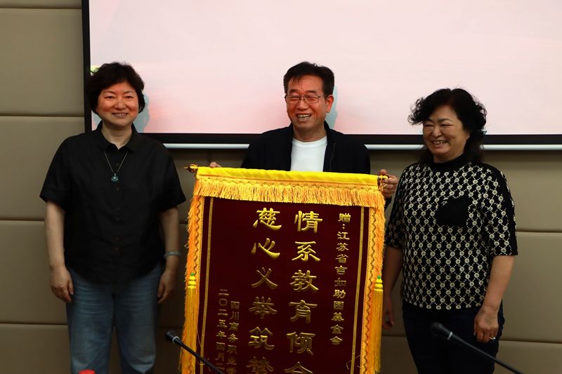 王军高度赞扬了吉如作为企业家所体现出的强烈社会责任感,并代表学院授予“情系教育倾全力 慈心义举筑梦途”锦旗。她勉励受助学生要保持“穷且意坚,不坠青云之志”的人生态度,在学业上刻苦钻研,在生活中自立自强,在品德上修德向善,以优异的成绩回报社会,以实际行动传承爱心火种,将来成为对国家、对社会有用的人,让基金会的善行义举发挥更大的社会效应。
