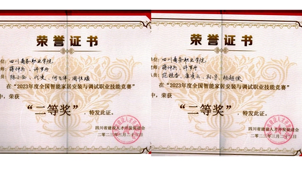 3月23日,由四川省建设人才开发促进会主办、成都工业职业学院承办的“2023年度全国智能家居安装与调试职业技能竞赛”中,信息技术系应用电子技术专业负责人蒋仲兵老师指导的应用电子技术专业2支代表队均获团体二等奖,这是应用电子技术专业学子首次参加此类比赛。