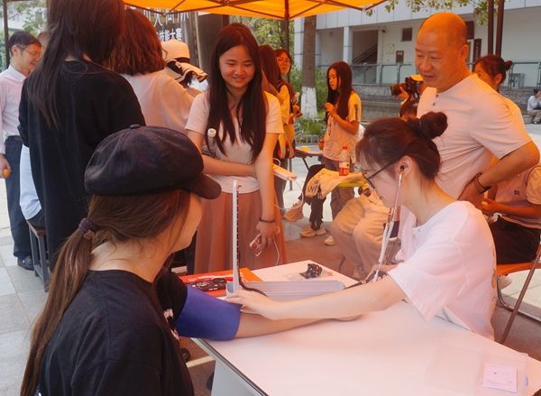 5月17日是“世界高血压日”。技能竞赛结束后,获奖选手在善培楼侧设置摊位,为全院师生测量血压,并进行健康知识宣教。活动现场气氛热烈,师生们井然有序排队测量并进行咨询,选手们将高血压成因、危害、相关防治以及如何规范测量血压等进行了详尽讲解,受到师生的一致好评。