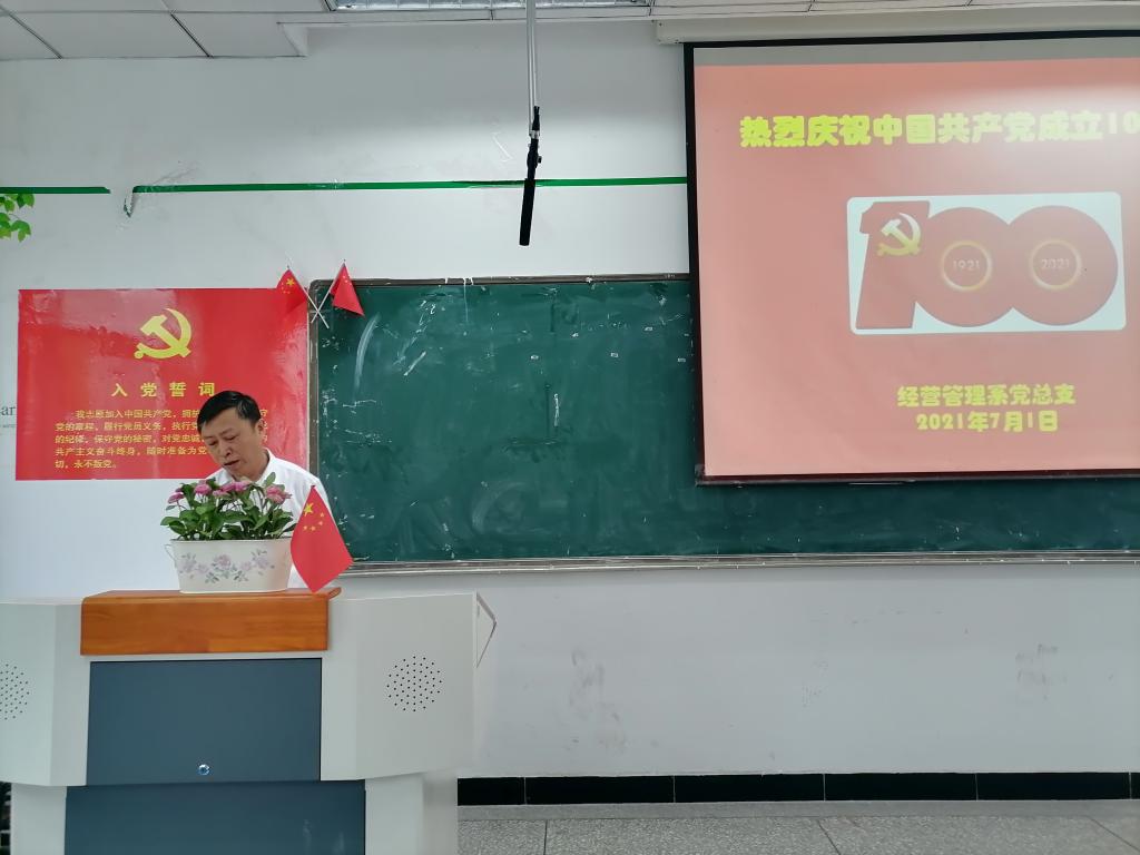 7月1日下午,经营管理系举行以“筑梦百年奋斗路 启航伟大新征程”为主题的庆祝建党100周年主题党日活动,33名教师党员和5名学生党员参加,共同重温入党誓词。 活动伊始,学院党委书记唐柯代表学院党委向全体共产党员...