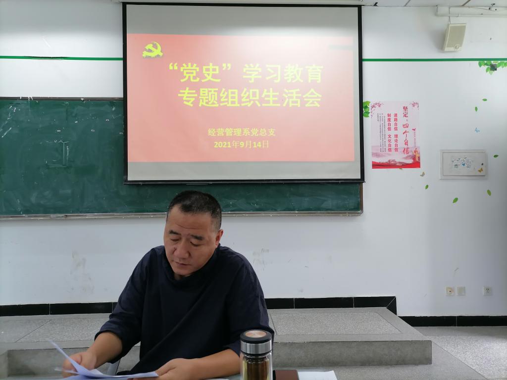 9月14日下午2:00,经营管理系党总支在1教202教室召开党史学习教育组织生活会,会议由总支书记郑海波主持。 会上,郑书记带领全体党员领学了《习近平回信勉励全国高校黄大年式教师团队代表》、《学史力行是党史学习教...