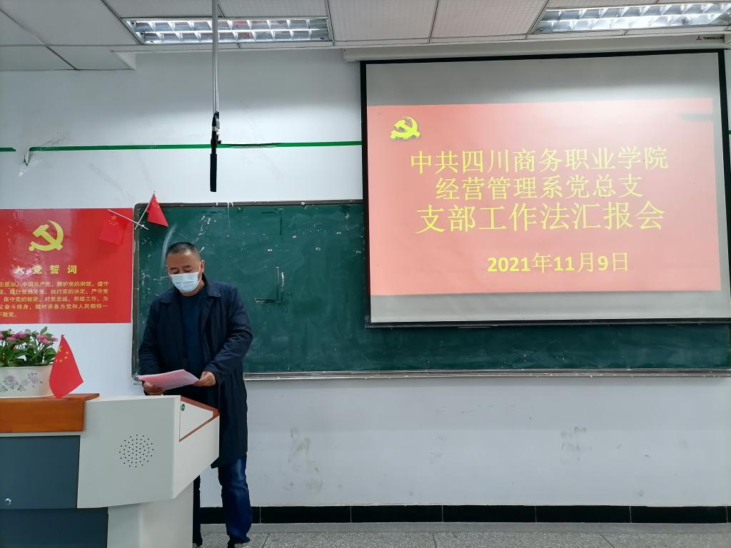 2021年11月9日上午9:30,经营管理系党总支“支部工作法”于第一教学楼202室如期举行。出席本次会议的有学院党委书记唐柯同志、学院组织部部长彭枫、经营管理系主任梁栋同志、经营管理系党总支书记郑海波同志、学院组...