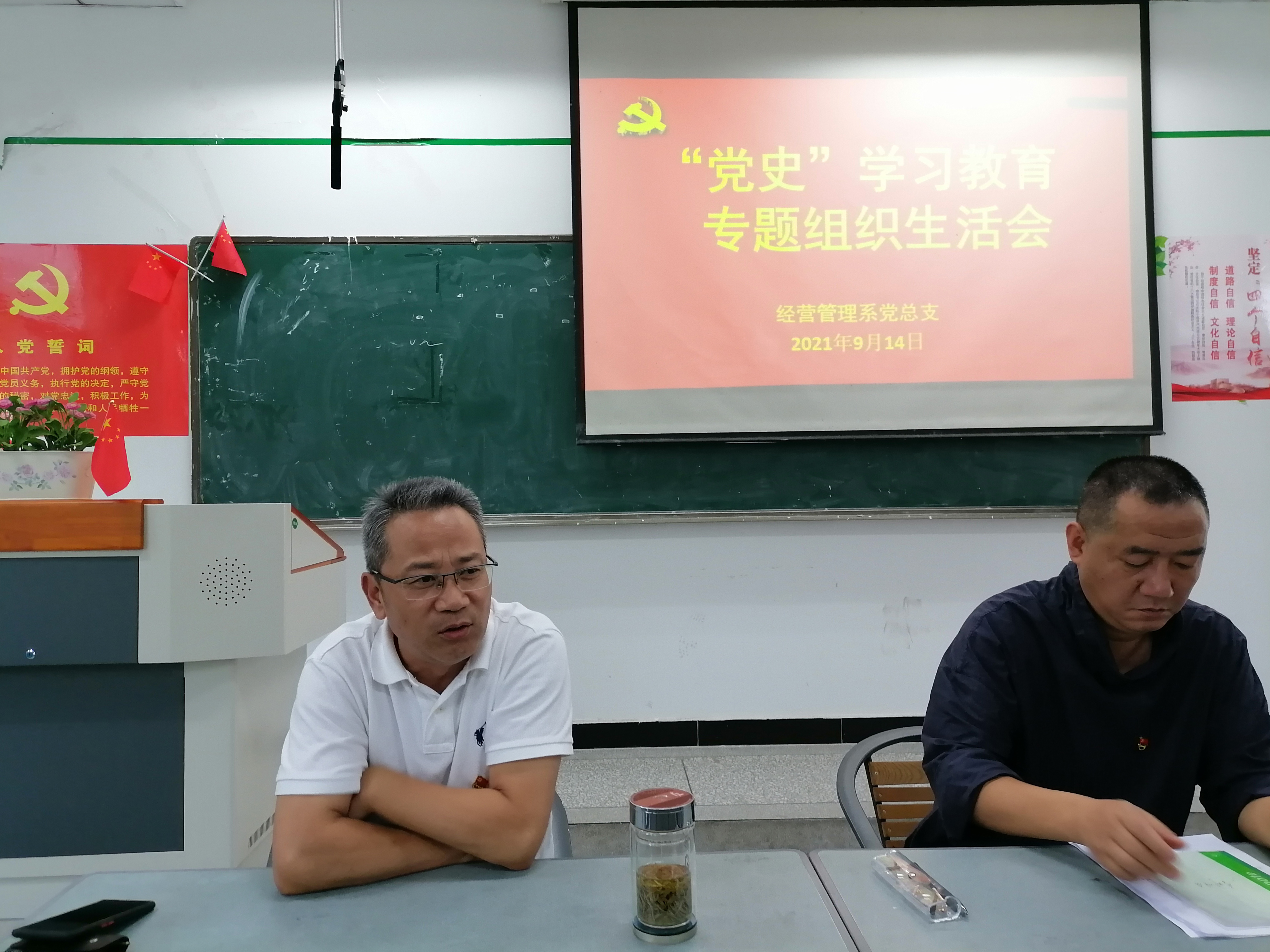 9月14日下午2:00,经营管理系党总支在1教202教室召开党史学习教育组织生活会,会议由总支书记郑海波主持。