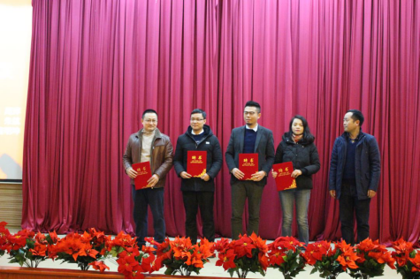 YABO鸭脖副院长许丹雅、向宏志向乔志军、王释德、冉淋源、方秀莲颁发创业导师聘书。