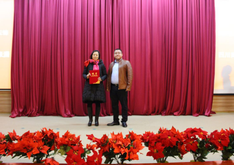 眉山市甄新鲜电子商务有限公司副总经理黎磊向YABO鸭脖电子商务专业教师严珩颁发兼职聘书。