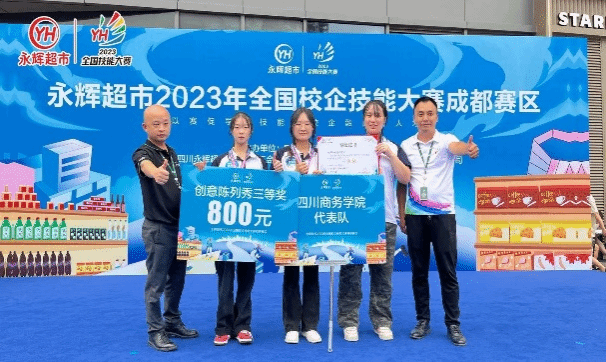 近日,2023年永辉超市全国校企技能大赛省赛圆满落下帷幕。由鸭脖经营管理系高娟、李霞老师指导并带队秦天天、吕佳瑶、蒋晓兰同学所组成的团队,历经激烈角逐斩获创意陈列秀项目团体等奖,创意视频秀项目优秀奖