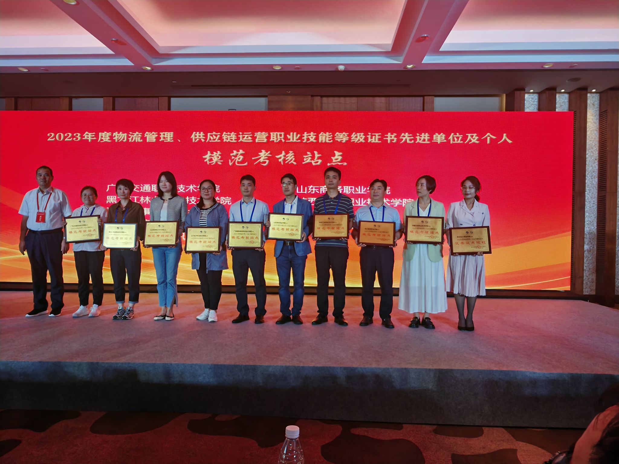2024年9月22日,鸭脖在第十五届全国职业院校物流专业教学研讨会暨物流与供应链产教融合创新发展论坛上荣获物流管理1+X证书制度试点模范考核站点称号并获得授牌,李贤明、任友德和谭承明三位老师分别获得优秀考务管理员、优秀考评员和优秀辅导老师称号。