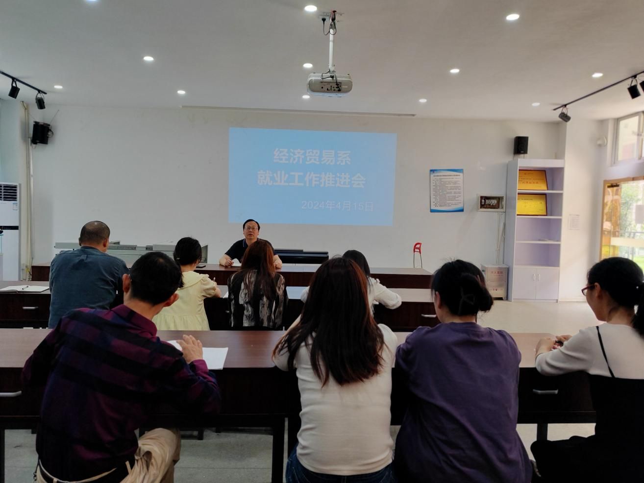 4月15日,经济贸易系召开了一场系部就业工作推进会,旨在进一步深化经济贸易系毕业生的就业工作,确保就业服务能够取得优质且显著的成效。会议由系党总支书记管齐峰主持,毕业班辅导员及就业干事参加