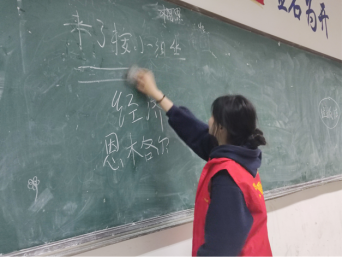 动员大会结束后,我系一群默默的志愿者们,响亮地喊出“黑板美容,我志愿,我服务!”的口号。大家兴致满满的分工合作,去往各个教学楼擦黑板!