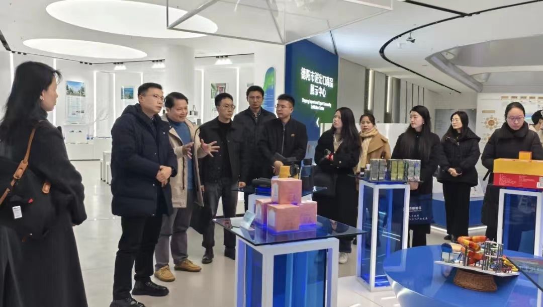 德阳市跨境电商产业园是2024年德阳市100项重点任务之一,通过打造“跨境电商+产业带、跨境电商+新零售、跨境电商+市场采购”等相融合的新业态、新模式,形成集商品展示、直播销售、人才培育、产业孵化、综合服务等于一体的综合性园区,目前已入驻企业43家。调研组一行首先参观了德阳市跨境电商产业园、外综服平台、进出口商品展示中心以及直播基地等,了解其在运营模式、人才孵化基地建设等方面的成果。