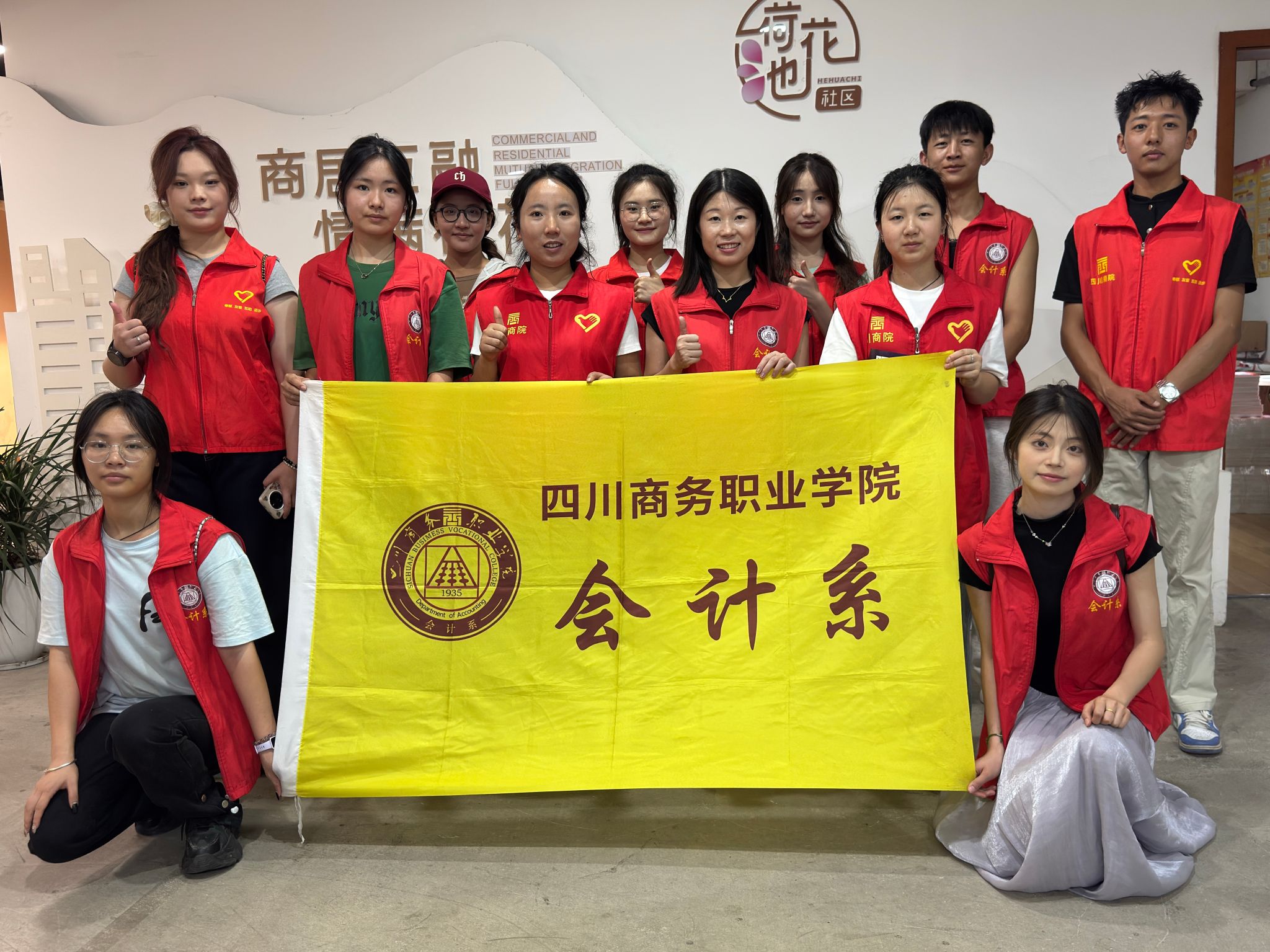 “小荷才露尖尖角,早有蜻蜓立上头。”盛夏七月,成都荷花池社区的荷花还未开满池,一群身穿红马甲的“青春会计侠”已在此“挥毫泼墨”——在系部党总支、团总支的统筹引领下,余漫老师、游娟老师带队,会计系社会实践队携手社区写下了一份妙趣横生的青春答卷。