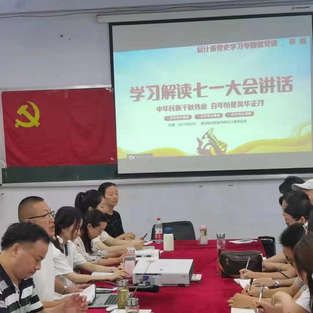 最后,会计系党总支周发强副书记强调,要以此次微党课学习为契机,利用“学习强国”、“川观新闻”等学习平台,把学习习近平总书记“七一”重要讲话精神作为当前理论武装工作的重中之重,作为党史学习教育的核心内容,吃透精神实质,把握核心要义,迅速掀起学习热潮,做到学习宣传研究全覆盖。