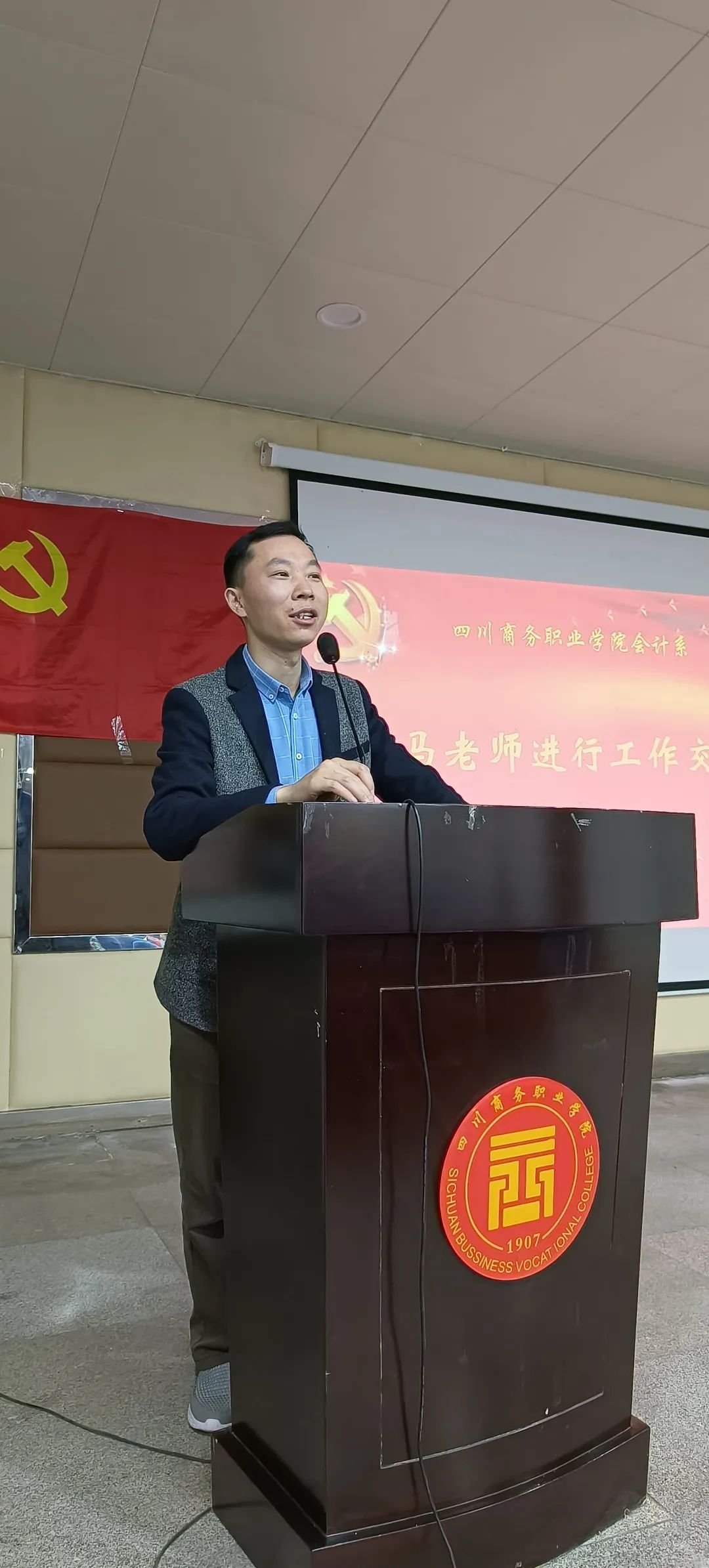 系党总支副书记周发强在讲话中说到:光阴似箭,白驹过隙。在这过去的一学期中,我系团总支在党总支的正确领导下干部勤勤恳恳、开拓创新。回首过去,我们为取得优异的成绩而感到自豪;展望未来,我们对即将踏上的道路充满期盼,责任在肩,势必要拼搏奋进,锐意进取,前方路很曲折艰难,必须坚定远大理想、励志前行,孜孜不倦、求索新知;希望所有学生干部在干好自己本职工作的同时,不断投身实践,锐意创新,不断增强工作的感召力、吸引力和影响力,不断团结和凝聚更多的优秀青年,创造新的青春业绩,为会计系的发展做出新的更大的贡献!