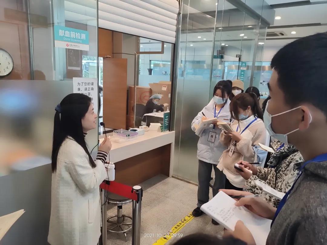 早上7点,各位同学在校门口整装待发出发,在略显寒冷的天气下,各位同学不畏严寒,来到了成都血液中心。血液中心的李老师对我们的到来表示了热烈欢迎,随后开始了对献血流程的讲解。李老师表示,由于疫情原因的影响,献血人员需要佩戴口罩,并出示健康码,再填写疫情防控报表。在献血前,也有一定的健康需求,这主要由工作人员来评估我们的身体状况是否符合献血要求。