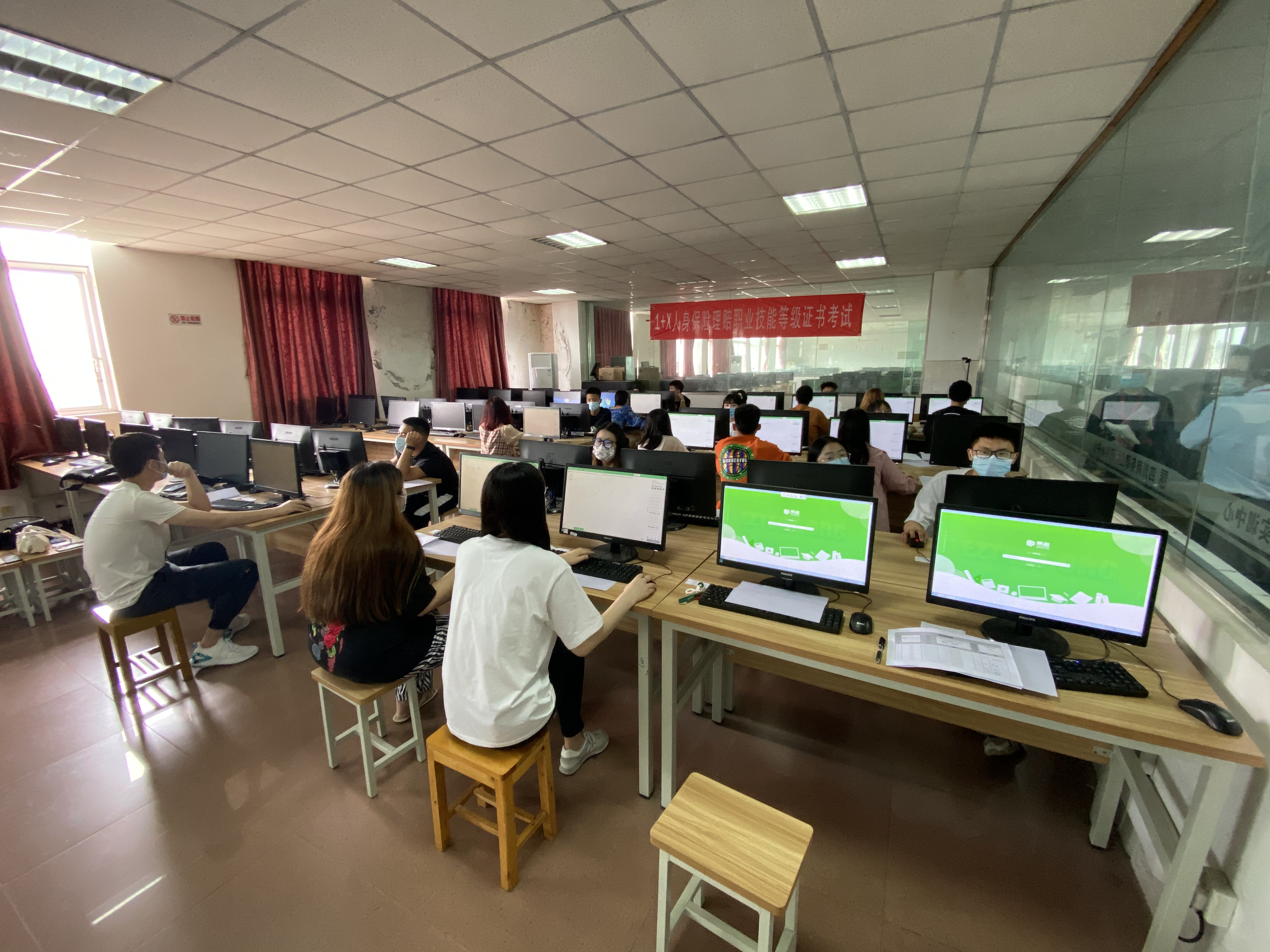 5月17日下午,由中保慧杰教育咨询(北京)有限公司实施的“1+X”人身理赔保险职业技能等级证书全国统一考试在鸭脖文家场校区四、六、十机房顺利举行。我系组织金融管理专业和互联网金融专业117名学生参加本次考试。