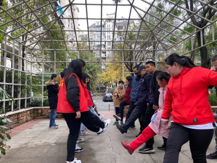 活动开始,志愿者与大家进行自我介绍,相互认识后我们便下楼到花园中,青志部的干事们展示了彝族特色舞蹈,并且分组对各位学生进行教学。活动过程中,各位干事积极热情,耐心的带动每一位学生参与进此次活动:各位学生也积极配合,跟随志愿者一起舞蹈,尽自己最大的努力去学习。
