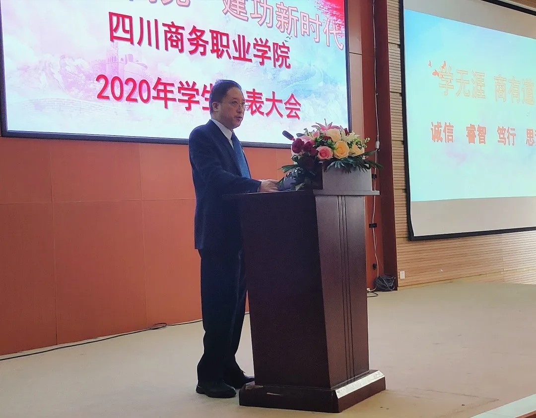 鸭脖学生会第十六届委员会向大会报告工作,报告说到:学院2020年学生代表大会是在党领导全国各族人民即将夺取全面建设小康社会新胜利,开启第二个百年奋斗目标,新征程历史交汇之年和学院迈出十四五建设新步伐召开的一次新生会议。会议的主题是高举习近平新时代中国特色社会主义思想伟大旗帜,全面贯彻习近平总书记关于教育的重要论述和关于青年工作的重要思想,坚持党的领导诚信睿智笃行思进,为建设四川省优质商科高级院系贡献青春力量,团结带领广大同学在实现中华民族伟大复兴中国梦的进程中书写青春篇章。